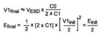 4. 能夠在瞬間導(dǎo)致IC損壞的能量相當于微焦級,有外部電源去耦電容時,考慮這一點非常重要,從電源電容(C1)傳遞到IC的能量是: