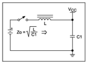上述特征阻抗的計算可以從低阻L-C電路的能量(E)推導(dǎo)出來: