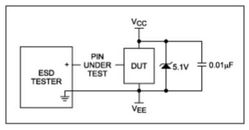 * 確定應(yīng)用場合的測試電壓(VESD),典型值為2kV的HBM或100V MM模式;