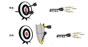 簡(jiǎn)而言之,SPD 會(huì)阻止具有破壞性的瞬變電壓浪涌電平到達(dá)所保護(hù)的設(shè)備。SPD 通過吸收過剩的電壓、將其分流或者組合使用這兩種手段,達(dá)到削弱浪涌電壓的目的。圖 1顯示了飛向靶子的箭。靶子代表 SPD,而箭代表瞬變電壓尖峰脈沖。當(dāng)箭擊中靶子時(shí),它會(huì)被吸收并滯留在靶子中。然而,靶子的厚度將決定箭是否可以在沒有穿到另一側(cè)時(shí)停止。同樣,在這種模式下,箭將不停地?fù)p壞靶子,將來靶子可能無法很好地阻止箭?,F(xiàn)在,假設(shè)在靶子前面有一個(gè)金屬盾牌。箭發(fā)出后,它會(huì)擊中盾牌,無任何損害地彈飛到靶子的旁邊。這就是大多數(shù) SPD 的基本工作原理。SPD 吸收能量(并且根據(jù)它們的質(zhì)地好壞,可以防止浪涌,但仍然會(huì)受到損壞),或者將電壓分流到設(shè)備接地線中。在大多數(shù)情況下,SPD 會(huì)將吸收和分流瞬變電壓浪涌的設(shè)備組合使用。