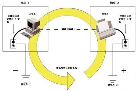 工廠設(shè)施中的接地連接只能連接到電力線路配電板上的單一連接點(diǎn)。這種與地面單點(diǎn)連接的方式可以避免由于疏忽而造成多個(gè)接地點(diǎn)。多個(gè)接地點(diǎn)會(huì)造成市電電壓的差異,導(dǎo)致不希望的電流流向低壓數(shù)據(jù)線。并對(duì)數(shù)據(jù)傳輸造成噪音干擾,雖然不會(huì)引起太大的損害,但也可能會(huì)形成瞬變電壓浪涌,嚴(yán)重?fù)p壞設(shè)備傳輸線。圖 2 顯示了一個(gè)接地回路示例。每個(gè)設(shè)備獨(dú)立接地(每個(gè)電源插座都參照不同的接地點(diǎn))。如果設(shè)備通過某種形式的接地(也導(dǎo)電)數(shù)據(jù)線連接在一起,就會(huì)出現(xiàn)問題。在圖2 中,計(jì)算機(jī)使用并行通信電纜連接到打印機(jī)。如果所使用設(shè)備接地點(diǎn)之間存在電勢(shì)差(有電荷差異),那么電流可能會(huì)通過并行電纜從一個(gè)設(shè)備流到另一設(shè)備,以便中和電荷。這就是“接地回路”,會(huì)對(duì)設(shè)備造成嚴(yán)重?fù)p壞,因?yàn)樵O(shè)備在正常條件下只需很小的電力就 可以工作。雖然這個(gè)示例只顯示了一處設(shè)施,但接地回路也可以在不同設(shè)施之間形成。