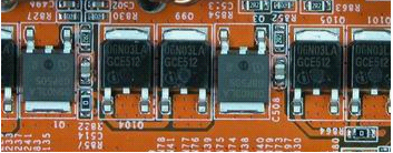 一般主板燒壞,維修人員最先檢查的都是Mosfet。質(zhì)量不好的Mosfet在長(zhǎng)時(shí)間使用的時(shí)候,會(huì)非常燙手,甚至有燒毀的可能。所以,選購(gòu)主板,觀察Mosfet這個(gè)環(huán)節(jié)上,最好考慮Philips,Infineon,IR的品牌,其次考慮Alpha,ST,ON這些品牌。如下圖所示:
