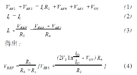 從式(4)中可以看出2 ln ( IS3 / IS2 ) VT相對于ln( IS3 / IS2 )VT受失調(diào)電壓VOS的影響明顯減少,即級連二極管的采用使基準(zhǔn)電壓受運(yùn)放失調(diào)影響減少?! ?br />