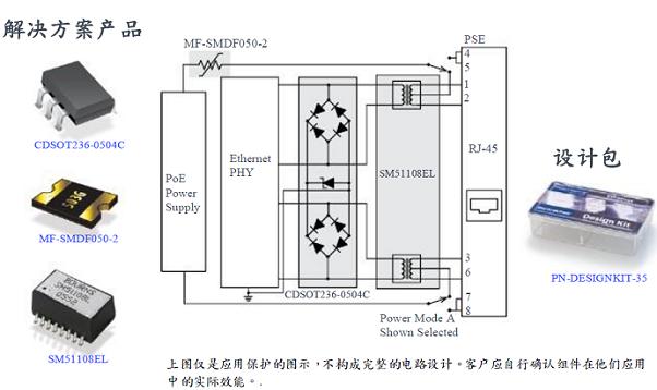 優(yōu)點(diǎn):本解決方案提供方案提供 ESD保護(hù)給10/100 Base-T以太網(wǎng)供電保護(hù)供電保護(hù)PD 組件,且不影響以太網(wǎng)路信號。