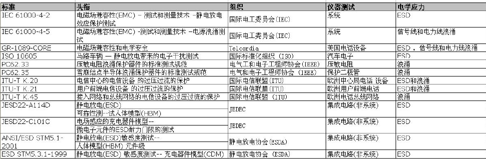 保護(hù)器件的測試標(biāo)準(zhǔn)