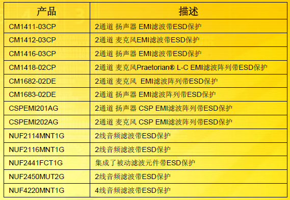 ONSEMI音頻信號(hào)濾波帶ESD保護(hù)