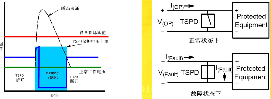 消弧保護(hù)器件:當(dāng)一個(gè)激勵(lì)觸發(fā)時(shí),通常是產(chǎn)生一個(gè)短路通道來實(shí)現(xiàn)保護(hù)目的。如晶閘管浪涌保護(hù)器件TSPD