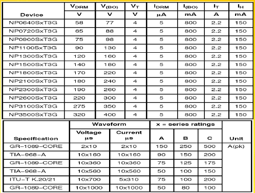 ONSEMI晶閘管浪涌保護(hù)器件NP系列