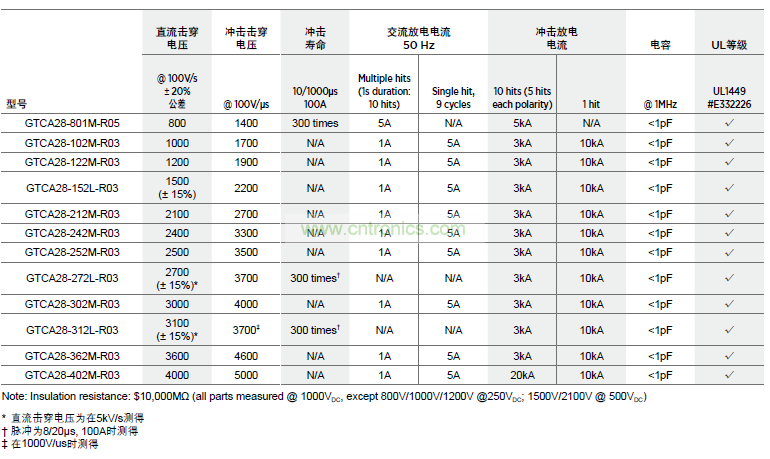 極佳的脈沖擊穿性能,適用于敏感設備