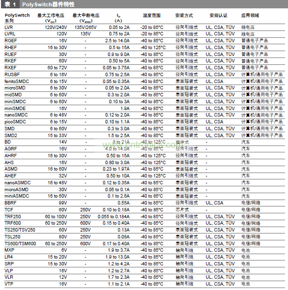 確保應(yīng)用場合的最小和最大環(huán)境溫度在PolySwitch器件的操作溫度范圍內(nèi)。大多數(shù)PolySwitch器件的操作溫度范圍介于-40℃到85℃,某些特殊情況下會達(dá)到125℃。
