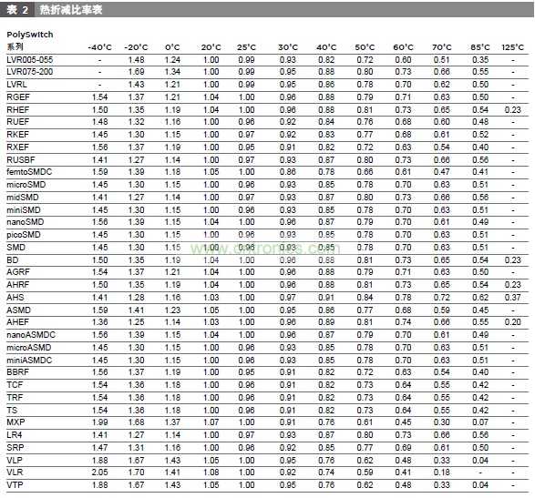 第2步:選擇能容納電路最大環(huán)境溫度和標(biāo)準(zhǔn)操作電流的PolySwitch器件