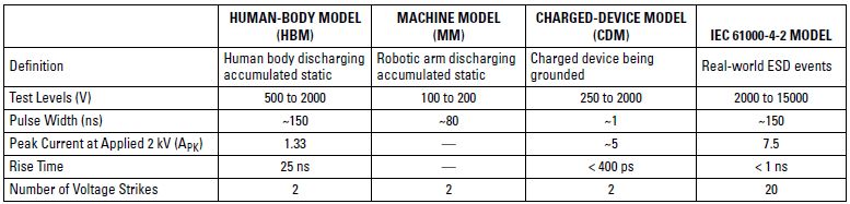 器件級模型和系統(tǒng)級模型有一些明顯的區(qū)別,表 2 列出了這些區(qū)別。表 2 中最后三個參數(shù)(電流、上升時間和電擊次數(shù))需特別注意: