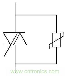 圖8中壓敏電阻并在開關(guān)觸點(diǎn)回路或被控制帶有感抗、容抗的負(fù)載, 防止電弧火花放電保護(hù)開關(guān)觸點(diǎn),延長(zhǎng)使用壽命。