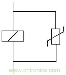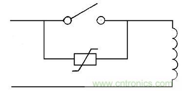 圖9中在繼電器、電磁鐵、磁力開關(guān)、電磁閥門的線圈兩端并接壓敏電阻, 能吸收線圈兩端存貯的能量, 延長(zhǎng)線圈使用壽命, 防止頻繁開關(guān)產(chǎn)生噪音的輻射。