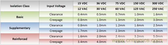 這就是為什么UL定義了三種不同的隔離等級,明確提出電氣間隙和爬電距離。電氣間隙是兩點(diǎn)之間的直線距離,爬電距離是沿著表面的路徑。要符合最低UL“基礎(chǔ)”等級,一個(gè)24VDC輸入電壓的轉(zhuǎn)換器,它的電氣間隙和爬電距離分別是0.5mm和1.0mm。要達(dá)到“補(bǔ)充”等級,這些值要翻倍達(dá)到1.0mm和2.0mm。要達(dá)到加強(qiáng)隔離的最高等級,上述的轉(zhuǎn)換器必須要滿足2.0mm和4.0mm的電氣間隙和爬電距離,這已是“基礎(chǔ)”等級的四倍了。