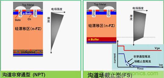圖1:溝道非穿通型和溝道場(chǎng)截止型IGBT對(duì)比