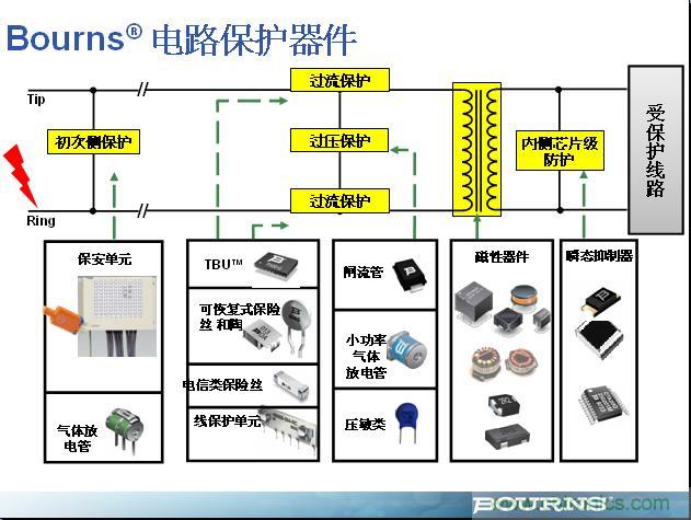 這些保護元器件,一般過壓的都是在芯片上面。一些保安單元、氣體放電管等等,這邊會放在靠近外面的部分。中間的部分我們會用一些像是保險絲,或者是電感、電阻等等,來做一個協(xié)調(diào)的作用??梢钥吹竭@邊都是我們目前所有的保護元器件。利用不同的保護元器件進行搭配,提供一個完整的解決方案。