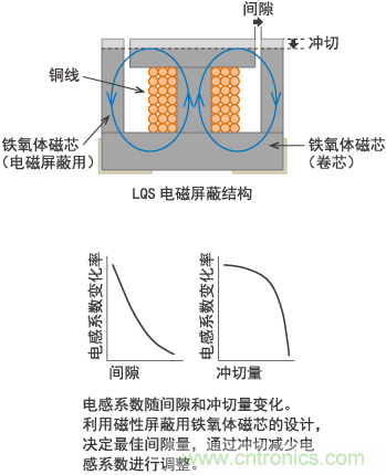 最后,LQS系列雖已履行完其商品職能,但構(gòu)成閉磁路用的鐵氧體磁芯組合技術(shù),已由電磁屏蔽結(jié)構(gòu)的卷線商品(LQH66S,DLW5BS/T)繼續(xù)發(fā)揚(yáng)光大。
