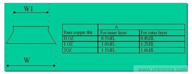 走線上下寬度不一致的原因是:PCB板制造過(guò)程中是從上到下而腐蝕,因此腐蝕出來(lái)的線呈梯形。