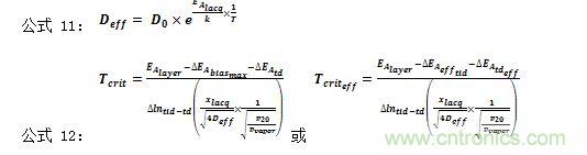 公式11和公式12描述了估算擴散Deff 的系數(shù),以及臨界溫度相關涂漆或塑模系統(tǒng)的Tcrit 或 Tcrit eff。