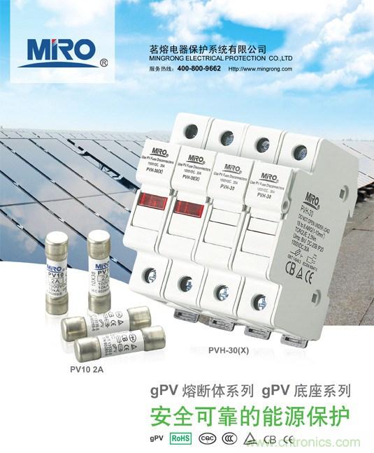 浙江茗熔電器生產(chǎn)的PV系列熔斷器是專門為保護(hù)太陽能光伏(PV)系統(tǒng)而設(shè)計(jì)的,適用于光伏組件串和光伏方陣電能系統(tǒng)中光伏匯流箱的應(yīng)用;熔斷器能夠分?jǐn)喙收螾V陣列(反向電流、多排陣列故障)產(chǎn)生的較低過載電流,以保護(hù)和隔離光伏組列。該系列產(chǎn)品額定工作電壓DC 1000V,額定工作電流2A~30A的光伏電能系統(tǒng)中,具有全范圍分?jǐn)嗄芰Φ娜蹟囿w,額定分?jǐn)嗄芰C1000V/10kA。PV10光伏熔斷體由純銀帶/絲制成的熔體封裝于由高強(qiáng)度有機(jī)材質(zhì)制成的熔管內(nèi);熔管中充滿經(jīng)化學(xué)處理過的高純度石英砂作為滅弧介質(zhì);熔體兩端通過焊接與接觸帽(內(nèi)蓋)牢固電連接,內(nèi)置的絕緣隔離墊片,能滿足光伏熔斷器系統(tǒng)在極端使用條件下的應(yīng)用,確保性能更穩(wěn)定,表現(xiàn)更優(yōu)異、可靠。 產(chǎn)品符合IEC60269-6和GB/T 13539.6標(biāo)準(zhǔn)。熔斷體外形尺寸和基本性能與國(guó)內(nèi)外同類型產(chǎn)品接近,故能作為國(guó)外引進(jìn)設(shè)備上同類型熔斷體的替換。