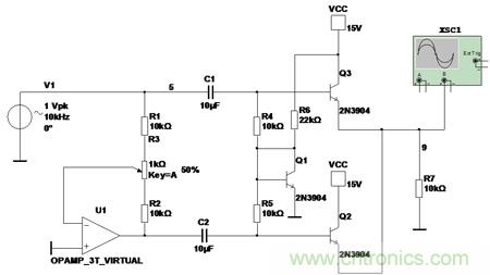 整個(gè)電路設(shè)計(jì)的挺巧妙的。我仿真了一下效果也蠻不錯(cuò)的。這里簡(jiǎn)單的對(duì)這個(gè)電路分析一下。
