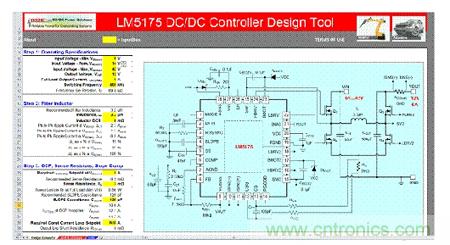 圖3. 步驟1到3分別是指運(yùn)行技術(shù)規(guī)格、電感器篩選和電流感測。這個(gè)電路原理圖是根據(jù)輸入的以及計(jì)算出來的組件值自動組裝而成。