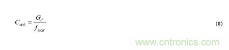 下一個(gè)選項(xiàng)是使用方程式8來選擇抖動電容值,以設(shè)定展頻調(diào)制頻率[5],在這里,Gd是與控制器相關(guān)的電導(dǎo)系數(shù)。