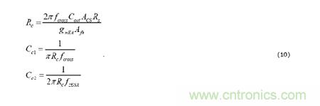 小信號控制環(huán)路補(bǔ)償性能由2個(gè)基礎(chǔ)波特圖度量標(biāo)準(zhǔn)測定:交叉頻率和相位裕量。由RC和CC1決定的補(bǔ)償器零頻率提供交叉頻率之前的相位提升。位于輸出電容器ESR零點(diǎn)附近(或者是開關(guān)頻率的一半,以低者為準(zhǔn)),隨CC2建立起來的一個(gè)極點(diǎn)提供噪聲衰減,并且盡可能地將到COMP節(jié)點(diǎn)的輸出紋波傳播降到最低。使用以下方程式選擇補(bǔ)償組件: