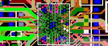本文使用的微型BGA焊盤內(nèi)過孔扇出例子采用的是0.4mm球或引線間距,PCB是18層,包括8個(gè)信號(hào)布線層。BGA布線通常要求更多的層數(shù)。但在這個(gè)例子中,層數(shù)不是問題,因?yàn)橹挥昧松倭康腂GA球。關(guān)鍵問題仍然是微型BGA的0.4mm窄間距,并且頂層除了扇出外不允許布線。目標(biāo)是既做到扇出微型BGA,又不負(fù)面影響PCB的制造。