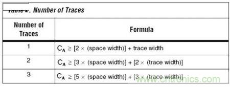 可以經(jīng)過這個(gè)區(qū)域布線的走線數(shù)量用表2進(jìn)行計(jì)算。