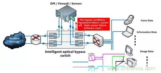 OBP旁路保護系統(tǒng): 光旁路保護系統(tǒng)(Optical Bypass Protection system)是一種應(yīng)用于光纖通信領(lǐng)域并能自動繞過故障網(wǎng)絡(luò)節(jié)點的智能光路切換系統(tǒng),能自動識別網(wǎng)絡(luò)節(jié)點供電狀態(tài)及光信號輸出狀態(tài),當本地光設(shè)備出現(xiàn)故障(包括電源中斷、硬件或軟件故障等)后,能夠瞬間切換到旁通光路,通訊線路將繞過本地設(shè)備(即故障節(jié)點),從而能避免由于該故障節(jié)點而發(fā)生全阻障礙,保證系統(tǒng)連通正常。