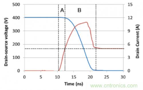 圖3:針對一個硬開關變換的接通轉(zhuǎn)換。