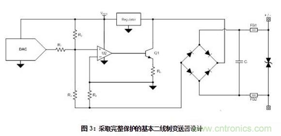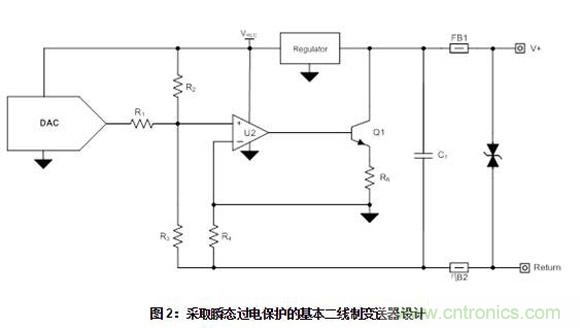 【導讀】在熟知變送器設計和運行的前提下,本文將討論如何設計保護這些系統(tǒng)的電路。文章中的圖片為基本的二線制變送器設計供參考。