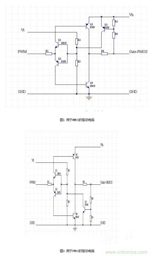2,用小幅度的PWM信號(hào)驅(qū)動(dòng)高gate電壓需求的MOS管。
