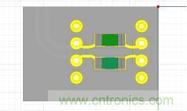 根據(jù)上節(jié)3種Case情況下的仿真結(jié)果和PCB設(shè)計的實際情況,AC耦合電容只掏空GND02層,掏空尺寸為X方向掏34mil,Y方向掏66mil。因為ViaExpert可以直接導(dǎo)入Brd文件,所以在PCB設(shè)計完成后在ViaExpert里面直接對Brd進行解析,提取出板上的AC耦合電容和出線。PCB實際AC耦合電容的設(shè)計以及導(dǎo)入到ViaExpert中提取完成的3D效果圖分別如圖12和圖13所示。
