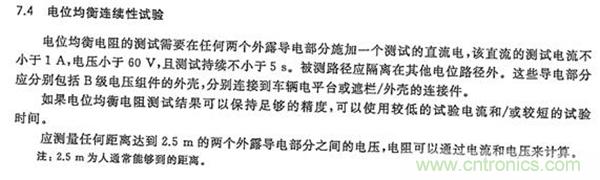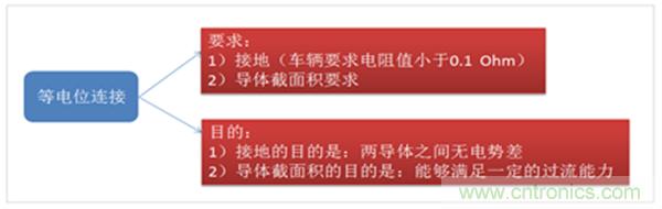 ③ISO 6469-3 Electrically propelled road vehicles-Safety specification-Part3:Protection of persons against electric shock GB/T 18384-3對(duì)等電位連接的設(shè)計(jì)要求、測(cè)試要求在標(biāo)準(zhǔn)6.3.1和6.9中做了明確規(guī)定。