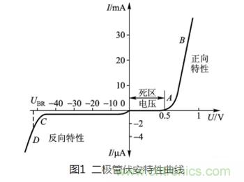 提到二極管,大家最熟悉的就是二極管的單向?qū)щ娦?,反映伏安曲線上如圖1所示。當(dāng)正向偏壓U=0.5V(硅管)時(shí),二極管開始導(dǎo)通,電流越大電壓越大,具有很低阻抗;當(dāng)加反向偏壓時(shí)二極管不導(dǎo)通,在一定范圍內(nèi)有很小的漏電流,具有很大阻抗。其這個(gè)單向?qū)щ娦?,也起到了開關(guān)的作用,所以在整流和開關(guān)方面都有廣泛的應(yīng)用。