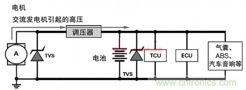 現(xiàn)代汽車設(shè)計(jì)中,所有車載電子設(shè)備都要連接電池和交流發(fā)電機(jī)。交流發(fā)電機(jī)是電氣瞬態(tài)的主要來(lái)源,其中最 糟的是拋負(fù)載。這種情況發(fā)生在電池已經(jīng)斷開(kāi)而交流發(fā)電機(jī)正在發(fā)電、其他負(fù)載還在交流發(fā)電機(jī)環(huán)路上時(shí)。如果置之不理,電氣尖峰和瞬態(tài)將沿著電線傳遞,導(dǎo)致個(gè)別電子設(shè)備和傳感器故障,或永久損壞汽車的電子系統(tǒng)。當(dāng)然,拋負(fù)載失控還會(huì)威脅車輛本身的安全性和可靠性。