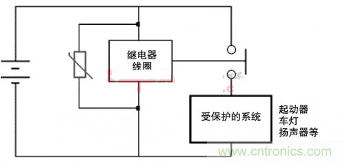 也可以用MOV對(duì)汽車子系統(tǒng)(如氣囊、傳動(dòng)系和氣候控制)提供交流發(fā)電機(jī)瞬態(tài)保護(hù)。也可以作為瞬態(tài)浪涌的分流電阻使用,避免直流電源線受浪涌影響(見(jiàn)圖3)。