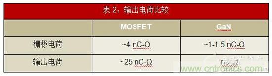 • 較低的柵極和輸出電荷:GaN提供較低的柵極電荷。與MOSFET的4nC相比,典型的中壓器件具有大約1nC的柵極電荷(表2)。較低的柵極電荷使設(shè)計具有更快的導(dǎo)通時間和轉(zhuǎn)換速率,同時減少損耗。