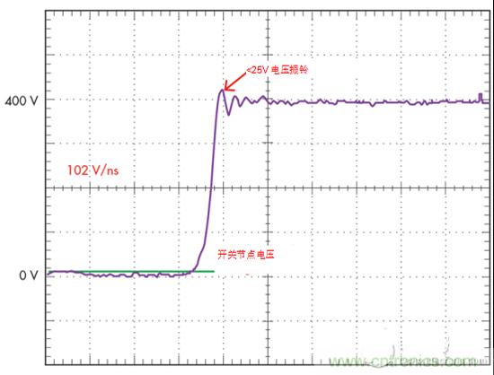 2.如通過優(yōu)化的驅(qū)動器設(shè)計的GaN開關(guān)波形所證明的,GaN可以非常高速的轉(zhuǎn)換速率工作,并且使交換節(jié)點上的振鈴最小。