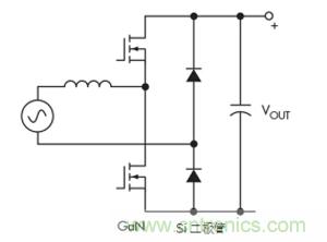 許多大功率系統(tǒng)(> 1 kW)采用雙橋拓撲結(jié)構(gòu)(圖3)。隨著碳化硅(SiC)二極管和最新一代的超結(jié)MOSFET晶體管的引入,我們已經(jīng)看到過去十年中功率密度方面的改進。然而,這些改進已達到效率和功率密度的停滯期。