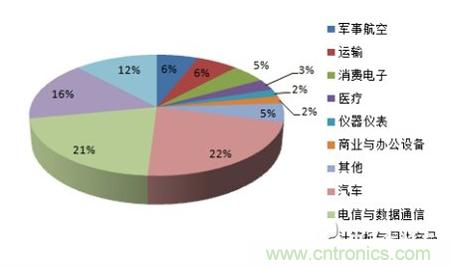 中國(guó)連接器市場(chǎng)已經(jīng)占據(jù)全球30%左右連接器市場(chǎng),但是我國(guó)連接器還主要以中低端為主,高端連接器占比較低,從全球來(lái)看,汽車連接器是最大應(yīng)用市場(chǎng)。根據(jù)統(tǒng)計(jì),汽車市場(chǎng)應(yīng)用是全球連接器最大的應(yīng)用市長(zhǎng),占比達(dá)到 22.2%。其次是電信與數(shù)據(jù)通信,約有 21%,另外計(jì)算機(jī)與工業(yè)分別占比達(dá)到 16%、12%。