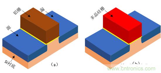 圖1.13鋁柵和多晶硅柵的MOS管結構圖