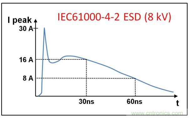 靜電放電(ESD)是指兩個電位不同的帶電體之間因為近接觸或電場的傳導而突然產生靜電電荷的傳輸。其特性是在較短的時間內有較大的電流。IEC 61000-4-2測試的主要目,就是確定系統(tǒng)在工作過程中對系統(tǒng)外部ESD事件的抗擾度。IEC 61000-4-2規(guī)定了不同環(huán)境狀況下的電壓測試級別,共分4個級別。1級最輕微,4級最嚴重。1級和2級適合擁有防靜電材料的 受控環(huán)境中安裝的產品。3級和4級適合情況更嚴重的環(huán)境中安裝的產品,這類環(huán)境下更常發(fā)生帶有較高電壓的ESD事件。