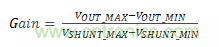 計(jì)算放大器的增益。運(yùn)算放大器放大VSHUNT以產(chǎn)生VOUT_MIN到VOUT_MAX的輸出電壓擺幅,其中VOUT_MIN 和VOUT_MAX分別是放大器的最小和最大輸出擺幅極限。公式3用于計(jì)算放大器產(chǎn)生所需的輸出擺幅的增益: