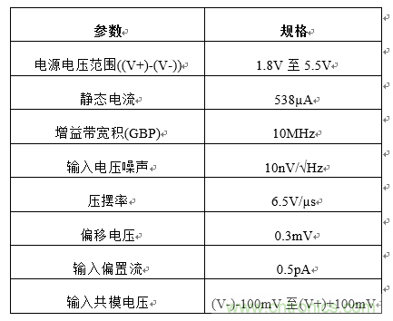 TLV906x系列高性能通用放大器可用于成本敏感型的低側(cè)電流感應(yīng)系統(tǒng),因?yàn)槠湓鲆鎺挘?0MHz)、壓擺率(6.5V/µs)、偏移電壓(0.3mV)以及輸入共模電壓范圍為負(fù)電源電壓以下100mV。表1列出了一些TLV906x系列的技術(shù)參數(shù)。
