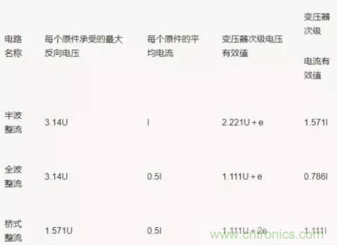 (1)常用整流電路性能對照