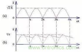 交流電經(jīng)過整流后得到的是脈動直流,這樣的直流電源由于所含交流紋波很大,不能直接用作電子電路的電源。濾波電路可以大大降低這種交流紋波成份,讓整流后的電壓波形變得比較平滑。